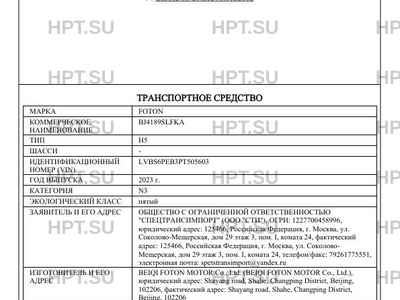 | Предприятие-изготовитель | BEIQI FOTON MOTOR Co., Ltd. |