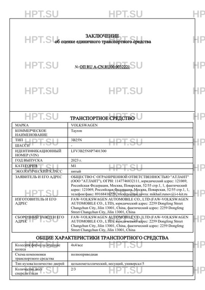 | Предприятие-изготовитель | FAW-VOLKSWAGEN AUTOMOBILE CO., LTD |