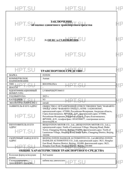 | Марка ТС | FOTON |