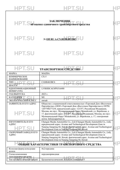| Коммерческое наименование | CX-5 |