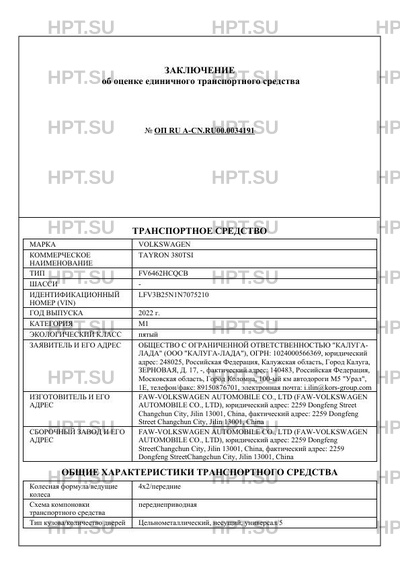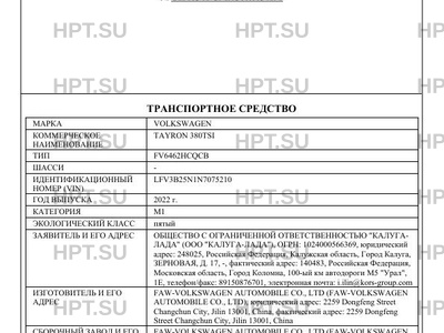 | Предприятие-изготовитель | FAW-VOLKSWAGEN AUTOMOBILE CO., LTD |