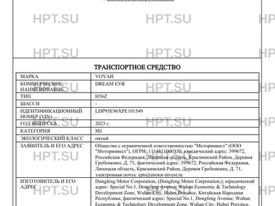 | Марка ТС | VOYAH |