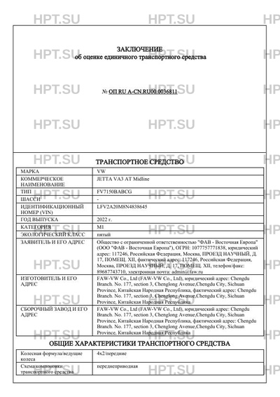 | Коммерческое наименование | JETTA VA3 AT Midline |