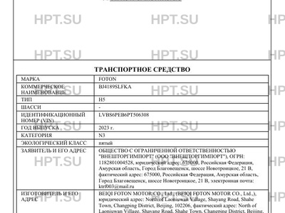 | Предприятие-изготовитель | BEIQI FOTON MOTOR CO., Ltd., |