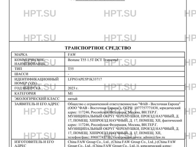 | Коммерческое наименование | Bestune T55 1.5T DCT Transcend |