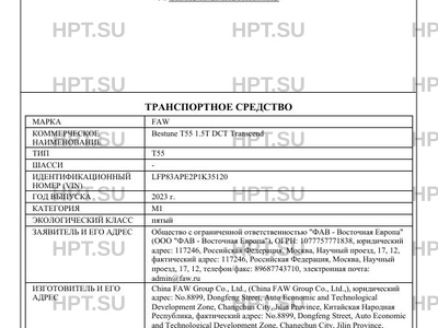 | Коммерческое наименование | Bestune Т55 1.5T DCT Transcend |