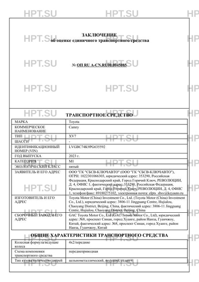 | Предприятие-изготовитель | Toyota Motor (China) Investment Co., Ltd. |