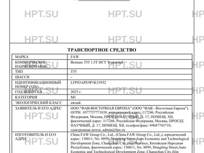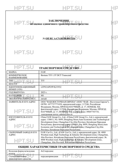 | Предприятие-изготовитель | China FAW Group Co., Ltd., (China FAW Group Co., Ltd.,), юридический адрес: 130011, No. 8899, Dongfeng Street,Auto Economic and Technological Development Zone, Changchun City,Jilin Province, Китайская Народная Республика, фактический адрес: 130011, No. 8899, Dongfeng Street,Auto Economic and Technological Development Zone, Changchun City,Jilin Province, Китайская Народная Республика |