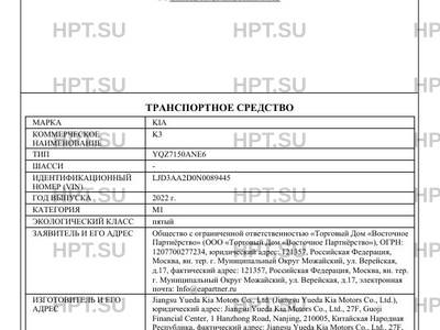 | Марка ТС | KIA |