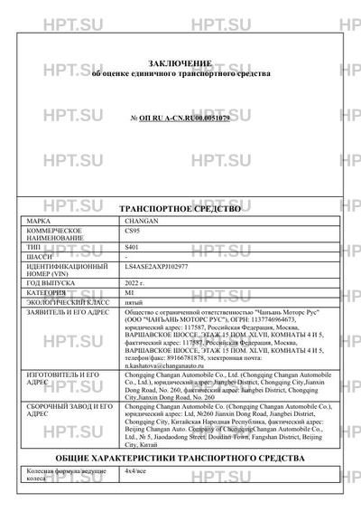 | Предприятие-изготовитель | Chongqing Changan Automobile Co., Ltd. (Chongqing Changan Automobile Co., Ltd.), юридический адрес: Jiangbei District, Chongqing City,Jianxin Dong Road, No. 260, фактический адрес: Jiangbei District, Chongqing City,Jianxin Dong Road, No. 260 |