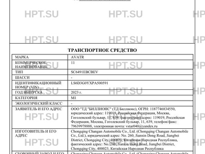 | Марка ТС | AVATR |