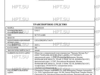 | Марка ТС | CHANGAN |