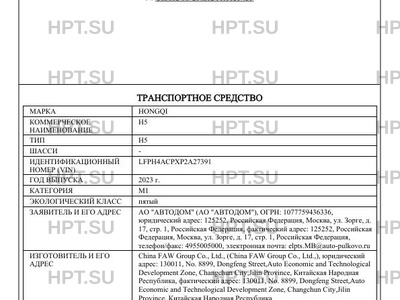 | Марка ТС | HONGQI |