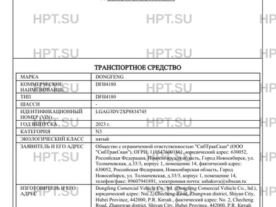 | Предприятие-изготовитель | Dongfeng Comercial Vehicle Co., ltd. (Dongfeng Comercial Vehicle Co., ltd.), юридический адрес: No. 2, Checheng Road, Zhangwan district, Shiyan City, Hubei Province, 442000, P.R. Китай., фактический адрес: No. 2, Checheng Road, Zhangwan district, Shiyan City, Hubei Province, 442000, P.R. Китай. |
