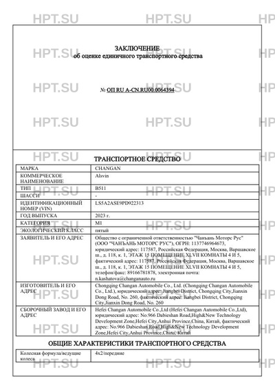 | Марка ТС | CHANGAN |