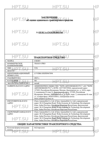 | Коммерческое наименование | TIGGO 4 PRO |