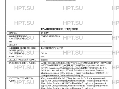 | Коммерческое наименование | TIGGO 8 PRO MAX |