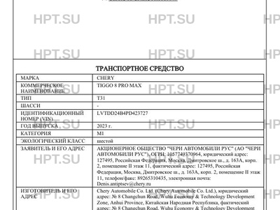 | Коммерческое наименование | TIGGO 8 PRO MAX |