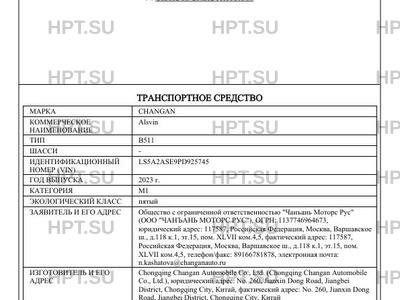 | Марка ТС | CHANGAN |