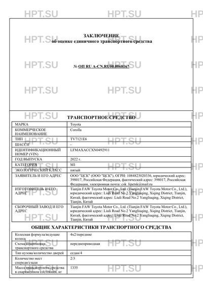 | Коммерческое наименование | Corolla |