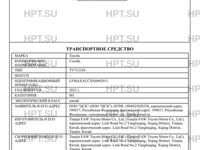 | Тип ТС | TV7121E6 |