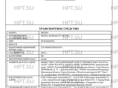 | Коммерческое наименование | SKODA KODIAQ GT 380 TSI |