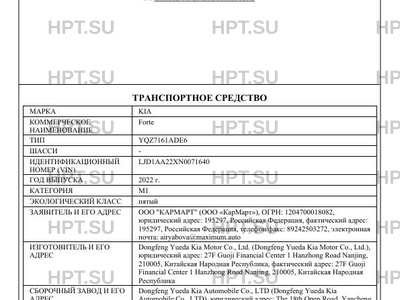 | Марка ТС | KIA |
