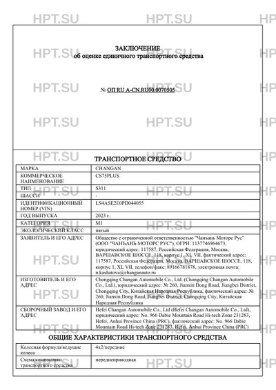 | Марка ТС | CHANGAN |