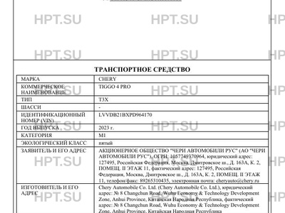 | Коммерческое наименование | TIGGO 4 PRO |