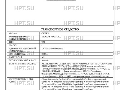 | Коммерческое наименование | TIGGO 8 PRO MAX |