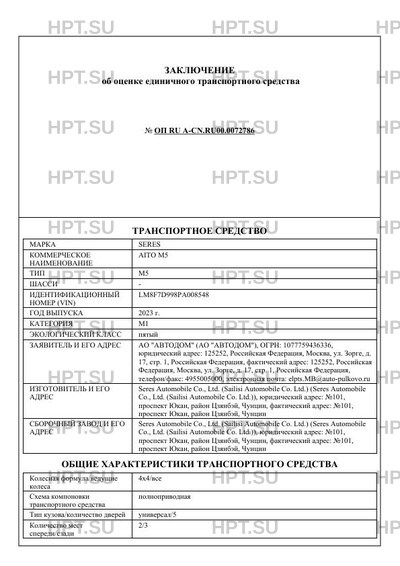 | Марка ТС | SERES |