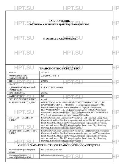 | Марка ТС | SITRAK |
