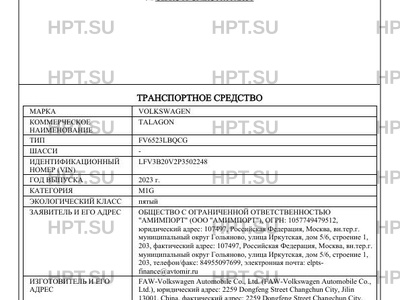 | Марка ТС | VOLKSWAGEN |