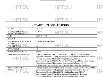 | Предприятие-изготовитель | Chengdu Dayun Automobile Co. Ltd. |
