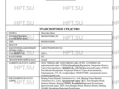 | Категория ТС | N3 |