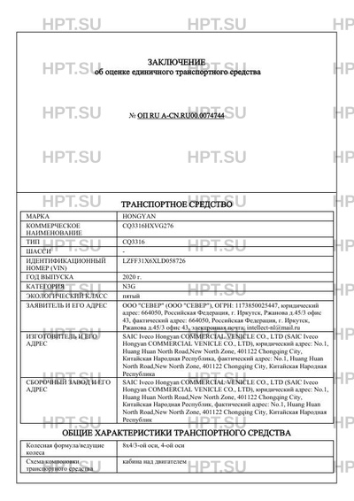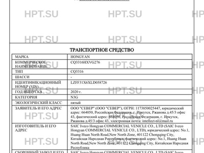Предприятие-изготовитель SAIC Iveco Hongyan COMMERCIAL VENICLE CO., LTD