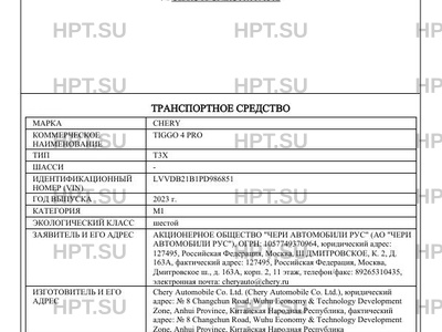 | Предприятие-изготовитель | Chery Automobile Co. Ltd. |
