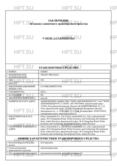 | Предприятие-изготовитель | Chery Automobile Co., Ltd. (Chery Automobile Co., Ltd.), юридический адрес: № 8 Changchun Road, Wuhu Economy and Technology Development Zone, Anhui Province, фактический адрес: № 8 Changchun Road, Wuhu Economy and Technology Development Zone, Anhui Province |