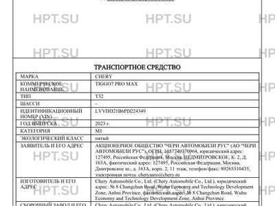 | Коммерческое наименование | TIGGO7 PRO MAX |