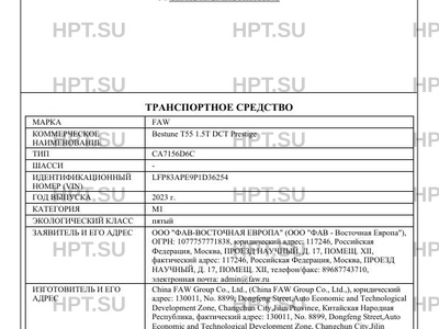 | Коммерческое наименование | Bestune T55 1.5T DCT Prestige |