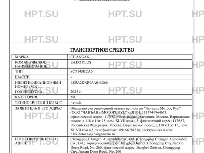 | Предприятие-изготовитель | Chongqing Changan Automobile Co., Ltd. |