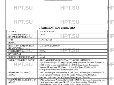 | Тип ТС | SVW71521AT |