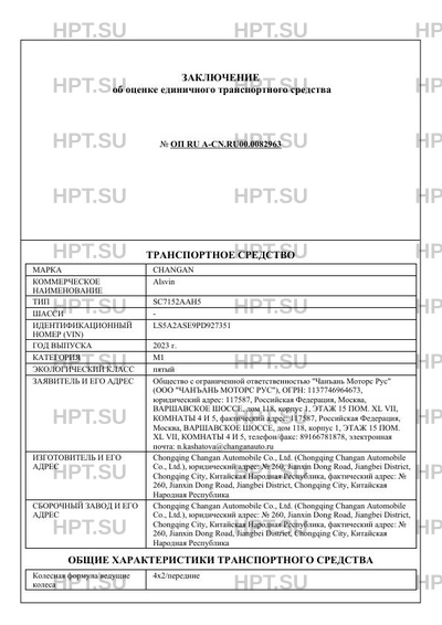 | Предприятие-изготовитель | Chongqing Changan Automobile Co., Ltd. (Chongqing Changan Automobile Co., Ltd.), юридический адрес: № 260, Jianxin Dong Road, Jiangbei District, Chongqing City, Китайская Народная Республика, фактический адрес: № 260, Jianxin Dong Road, Jiangbei District, Chongqing City, Китайская Народная Республика |