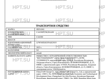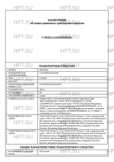 | ДВС | JIEFANG, CA6DM2-46E67,четырехтактный, с воспламенением от сжатия |