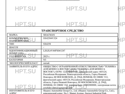 | Предприятие-изготовитель | Shaanxi Automobile Group Co., Ltd. (Shaanxi Automobile Group Co., Ltd.), юридический адрес: No.1, Shanqi Avenue, Jingwei Industrial Park, Economic-Technological Development Zone, Xian City, Shaanxi Province, 710200, Китайская Народная Республика, фактический адрес: No.1, Shanqi Avenue, Jingwei Industrial Park, Economic-Technological Development Zone, Xian City, Shaanxi Province, 710200, Китайская Народная Республика |