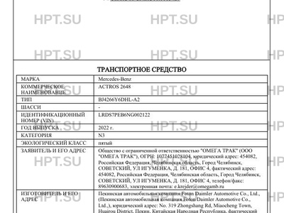| Коммерческое наименование | ACTROS 2648 |