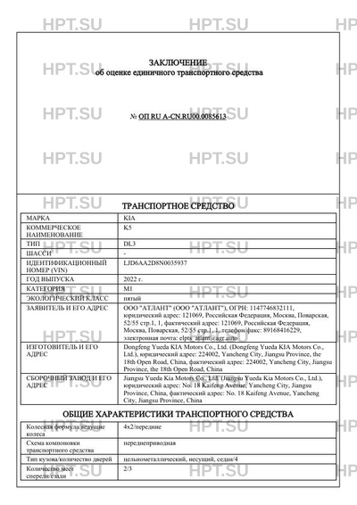 | Марка ТС | KIA |
