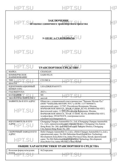 | Предприятие-изготовитель | Chongqing Changan Automobile Co., Ltd. |