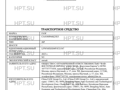 | ДВС | FAW, CA6DM3-55E52, четырехтактный, с воспламенением от сжатия, с турбонаддувом |