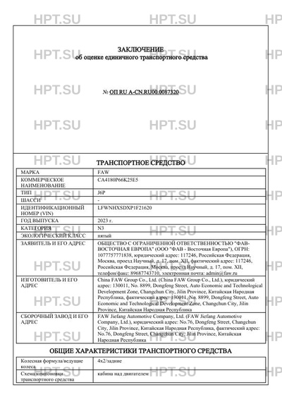 | Марка ТС | FAW |